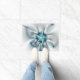 Flor de fantasía única y elegante con efecto 3D. tonos pastel azules y grises. Diseñar para tu felpudo y más.