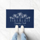 Add your own special touch to this simply elegant design featuring your family name or phrase and established date, and nine palm trees over a navy blue background.