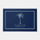 Añada su propio toque especial a este diseño elegante y sencillo que presenta su nombre o frase familiar y fecha establecida en texto verde azulado claro y palmera enmarcada en un borde verde azulado claro y pálido sobre un fondo azul marino.
