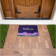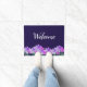Bienvenido a sus amigos con esta elegante alfombra de diseño floral de bonito. Hermoso diseño floral de lila rosa con un fondo azul violeta. Una gran idea de regalo. Puede cambiar el texto y ajustar el tamaño del tipo de letra y el color del tipo de letra. Si tienes alguna solicitud especial o necesitas ayuda, por favor avísenme.