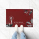 El moderno doormat decorativo presenta un diseño elegante con elegantes hojas de acuarela enmarcadas con círculos geométricos; un diseño inspirado en la naturaleza que presenta un colibrí elegante, ramas de olivo y avestruz elegante con un trato y una dirección presentados con un sencillo estilo moderno. Personalice el mensaje de bienvenida y la dirección del personalizado, o cambie al texto que elija utilizando los campos proporcionados, o utilice el botón "mensaje" para ponerse en contacto con el diseñador para obtener ayuda. Un boda perfecto o un regalo de bienvenida para una pareja elegante.