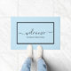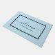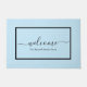 Elegante felpudo de bienvenida con un guión negro sobre un fondo azul claro. Personaliza con tu apellido o texto.