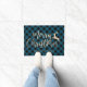 Felpudo Elegante Gold Feliz Navidad Negro y Blue Plaid