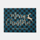 Diseño de felpa para Navidades modernos que presenta elegantes letras de guión manuscritas en oro falso, hermosos renos, fondo de estampado negro y azul de búfalo. Un regalo perfecto para los nuevos propietarios o recién casados.