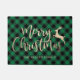 Diseño moderno de felpa para Navidades que presenta elegantes letras de guión manuscritas en oro falso, hermosos renos, fondo negro y verde de estampado de búfalo. Un regalo perfecto para los nuevos propietarios o recién casados.