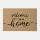 El bonito tejido tipo burrega de taupe presenta un elegante "Welcome to our Home" (Bienvenidos a nuestro hogar) con una sencilla tipografía y un encantador diseño de gusanos caligráficos, perfecto para los amantes de las casas de campo que adoran su patio, porche delantero o terraza de piscina con una decoración única al aire libre.