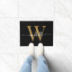 Felpudo Elegante Moderno Nombre con Iniciales en Oro Negro