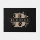 Elegante doormat monogramado de color marrón clásico duradero y negro rico presenta su monograma inicial único con el nombre de su familia puesto, decorado con un ilustracion floral y botánico.