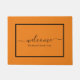 Elegante bienvenida a Doormat con un guión negro en un fondo naranja. Personaliza con tu apellido o texto.