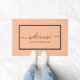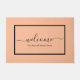 Elegante felpudo de bienvenida con un guión negro sobre un fondo de melocotón a la moda. Personaliza con tu apellido o texto.