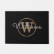 Felpudo Elegante nombre de guión de monograma de oro negro