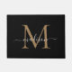 Elegante Personalizado negro y dorado Monograma guión Doormat