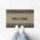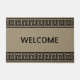 Elegante patrón griego en la alfombra beige de la puerta de bienvenida. El texto de bienvenida se puede personalizar.
