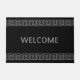 Elegante patrón griego grisáceo plateado en tapete de puerta de bienvenida negro. El texto de bienvenida se puede personalizar.