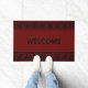 Elegante patrón griego negro en la alfombra de la puerta de bienvenida. El texto de bienvenida se puede personalizar.