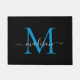 Elegante océano negro azul azul azul brillante Personalizado azul Monograma Script Nombre Doormat