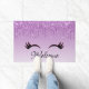 Una estera de puertas con un diseño moderno y elegante. El fondo es un color de gradiente morado con una imagen de purpurina espumoso falso goteando desde la parte superior. Un par de pestañas lindas y niñitas debajo de la imagen del purpurina.
