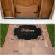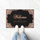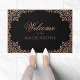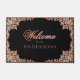 Felpudo Elegante rosa negra dorada con hojas de bienvenida