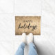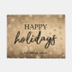 Hermoso doormat Happy Holidays con una textura clásica en negro y en oro. Añada el nombre de su familia en la parte inferior.