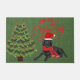 Elegante diseño práctico de bello labrador sobre el dorado de burlap verde. Este diseño se ve hermoso de muchas maneras y práctico al mismo tiempo. Un diseño de felpudo para los amantes del labrador negro. El texto Feliz Navidad es rojo y en un bello guión. Traidor de bienvenida y divertido vestido con sombrero de santa y pañuelo para Navidades.