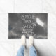 Esta es una fresca impresión en la nube oscura de un gran felpudo que dice 'QUITE SUS ZAPATOS ANTES DE ENTRAR' en grandes letras blancas. Con suerte, ¡todos serán descalzos cuando abran la puerta!