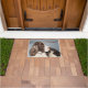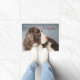 Este es un felpudo con una fotografía original de un hermoso hígado y un espátulo blanco de la Springer inglesa con un fondo azul/gris