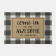 Añada un toque acogedor a su puerta principal con este bonito y divertido felíz portero personalizado con un borde de manto de búfalo blanco y negro. "Ven, somos geniales" aparece en el centro, con tu apellido debajo.