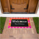 Eleva tu entrada con nuestra encantadora alfombra de bienvenida personalizada de diseño rosa y naranja, con una divertida pelota de golf en un vaso azul que sustituye a la O en Welcome. Vestimenta tu entrada con una alfombra de bienvenida con temática de golf. El regalo perfecto para el ávido golfista o la casa club de golf de 19 hoyos.
