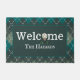 Eleva tu entrada con nuestra encantadora alfombra de bienvenida personalizada de diseño turquesa y argyle gris, con una divertida pelota de golf en un tee azul que sustituye a la O en Welcome. Vestimenta tu entrada con una alfombra de bienvenida con temática de golf. El regalo perfecto para el ávido golfista o la casa club de golf de 19 hoyos.