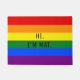 "Hola. Soy Mat". Gracioso, hilarante, humorístico, hermoso, vibrante, colores de la bandera arcoíris del orgullo gay LGBT, patrones de rayas geométricas coloridas, respaldo de goma no deslizante, alfombra cubierta exterior / interior / puerta de entrada. Hace un gran regalo a los LGBT, gays, lesbianas, bisexuales, amigos y familia transgénero, en cumpleaños, cambio de hogar, aniversario, boda, navidades, feriados y más.