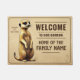 Das Design besticht durch natürliche Beige- und Brauntöne, die das Erdmännchen hervorheben, und einen sandfarbenen Hintergrund, der sich harmonisch in jede Umgebung einfügt. Die Schrift in Dunkelbraun sorgt für ein elegantes, klar lesbares Finish. Diese Matte ist nicht nur ein praktisches Wohnaccessoire, sondern auch ein wunderschönes Geschenk für Einweihungen oder als individuelles Deko-Highlight für Familien.