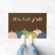 Bienvenido a nuestros huéspedes con un cálido saludo de otoño utilizando este encantador porche "It's Fall Y'all". El fondo marrón tierra complementa con gusto las calabazas dibujadas a mano alineadas a lo largo del fondo, cada una de ellas adornada con tonos suaves y mullidos de melocotón, azul, verde y amarillo. Este acogedor diseño le da un toque sencillo y acogedor a su entrada, y le da la bienvenida a los colores de la temporada de una manera deliciosa y sobria. Perfecto para los amantes de una mezcla de elementos clásicos de otoño con un toque moderno.