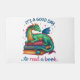Diseño vibrante y colorido con un montón de libros, dragón colorido encima y hongo. El colorido texto dice: "Es un buen día para leer un libro". Este diseño está disponible en una amplia variedad de productos.
