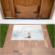 Personaliza tu nombre en esta elegante alfombrilla de bienvenida navideña con un zorro en un fondo boscoso de escena invernal.