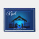 Este doormat presenta los tonos azules profundos de la escena del director con el texto de Noel The King Is Born sobre ella. Bordes de blanco y azul real. Personalizar este felpudo o compra como diseñado. imagen de stock cortesía de www.freepik.com