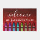 El pasado falso purpurina rojo rubí parece brillar. Purpurina de lápices de colores arcoiris en rosa caliente, morado, azul, turquesa, verde, dorado, naranja y rojo. El texto en blanco negrita dice "bienvenido" en tipografía de pizarra. Actualice fácilmente el nombre del profesor o el título del aula. Disponible en muchos otros colores y diseños de fondo brillantes.