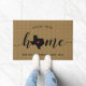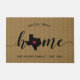 Muestra algo de orgullo de estado de casa con este felpudo personalizado que presenta "hogar" en letras de caligrafía con un mapa de silueta del estado de Texas para la letra "O". Un ilustracion cardíaco dentro del mapa de estado completa el diseño; puedes cambiar la posición del corazón a tu ciudad natal abriendo la herramienta de diseño y arrastrando la forma del corazón a tu sitio favorito. Personalice con su ciudad natal, su nombre familiar y el año establecido para crear un toque final perfecto para su puerta principal, o un regalo inolvidable para su hogar.