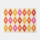 Se trata de un elegante estreno moderno de mediados de siglo sobre diamantes de arlequín retro en naranja, rojo, amarillo y rosa sobre fondo beige. Es un diseño decorativo muy bonito para tu casa