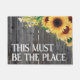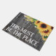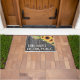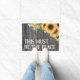 Esta debe ser la alfombra del doormat del girasol Place con un fondo de madera oscura. Bienvenido a casa dulce hogar.