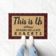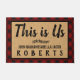 "Este somos nosotros" tapete de la puerta de texto con un silbido de hojas de helecho. Bonito, aspecto rústico de granja a cuadros - borde de yeso rojo y negro y centro de falsedades de burlap. Utilice la plantilla sencilla para el nombre del personalizar. Este diseño funciona mejor en el tamaño más grande. Para solicitar el tamaño más pequeño, visite aquí: https://www.zazzle.com/this_is_us_black_red_buffalo_check_plaid_custom_doormat-256569753728900941