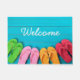 Estera de puerta mostrada con una impresión linda de la foto de los flips-flopes del tiempo de la playa del verano que le acogen con satisfacción.