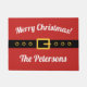 Estera de puerta agradable personalizada de las Felices Navidad. Añada su propio mensaje agradable, apellido, monograma, apellido o cita divertida. Plantilla linda de la muestra del doormat del día de fiesta. Cree su propia estera/manta de la entrada para la puerta principal, la entrada, el pasillo, el pórtico, las decoraciones caseras al aire libre adaptables de la decoración de Navidad del jardín etc. para su casa, tienda, compañía, tienda o negocio. Disponible en de gran tamaño pequeño y grande. Diseño de la correa de Papá Noel de la diversión.