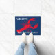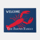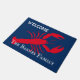 estera de puerta de bienvenida personalizado con diseño de langosta roja. Haga su propio personalizado monogramado de puerta interior / exterior con color de fondo personalizado y texto. Añade tu propio mensaje de bienvenida, apellido, apellido, carta inicial o cita graciosa. Idea de regalo para nueva casa / hogar, lugar de boda, tienda, pescadería, oficina de empresa, negocios, etc. Plantilla de tipografía de época. Crea tu propia estera/alfombra de entrada única para la puerta delantera/entrada o el vestíbulo. Decoración/decoración de la casa de personalizable para la casa de playa náutica. Idea de regalo marítimo para aficionados a la navegación/navegación en barco, pareja, marinero, capitán de barco o recién casados. Colores azul marino y rojo.