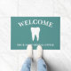 Estera de puerta de encargo de la práctica dental con el logotipo blanco del diente. Haga su propia muestra interior o al aire libre personalizada del doormat con color y texto de encargo del fondo. Añada su propio mensaje agradable, nombre comercial, apellido, letras iniciales o cita divertida. Idea con clase del regalo para la nueva oficina, la relocalización, la tienda, la tienda, la oficina profesional de la compañía, la plantilla del negocio etc. Personalizable con tipografía elegante. Cree su propia estera/manta con clase de la entrada para la puerta principal/la entrada o el pasillo. Decoración/decoraciones caseras adaptables para su clínica dental. Idea linda del regalo de la odontología para el higienista del dentista, auxiliar o dental.
