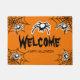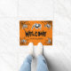 Tapa de puerta naranja de Halloween con arañas espeluznantes. Fantasía Halloween bienvenidos a casa, porche, hall, tienda, tienda, etc. Estera de puerta personalizada con tipografía aterradora. Decoración de casa naranja y negra con tu texto. Artículos para fiestas de vacaciones, decoraciones y accesorios para tu casa, oficina o tienda. Graciosa alfombra de bienvenida para el porche, la entrada, etc. Personaliza con un saludo personalizado. Prop divertida para fiestas de disfraces, fiesta de la casa, truco o tratamiento, etc. Disponible en tamaño pequeño y grande.
