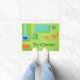 Esta estera de puerta retra moderna de los mediados de siglo adaptables le tendrá el explotar de sus filamentos de perlas para hacer las tareas más mundanas. Las características del diseño un fondo de la verde lima con la silueta de un azul, chimenea del cono, un verde, televisión clásica del tubo (termine con los oídos de conejo), un sillón y un escabel anaranjado, un azul, reloj del starburst, y un otomano anaranjado con las patas cónicas. Personalizar con un nombre o decir. ¡El hogar dulce casero acaba de conseguir un poco más dulce!