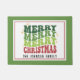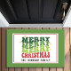 Celebra la temporada navideña con esta alfombra de Navidad personalizable que presenta una tipografía retro de moda en tonos brillantes de rojo, verde y amarillo. El saludo navideño divertido, “Merry Merry Merry Christmas”, aporta un toque divertido y festivo a su puerta, lo que lo convierte en una bienvenida alegre para su familia y sus invitados. Personalice este diseño colorido agregando el nombre de su familia para crear un saludo único que difunda alegría navideña. Esta alfombra retro también es un regalo considerado y único para los nuevos propietarios, que añade encanto festivo a su entrada.