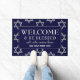 Elegante, Estrella de David BIENVENIDA Puerta Mat con el texto BIENVENIDO Y BIENVENIDO A TODOS LOS QUE ENTRAN AQUÍ (EXCEPTO TRESPASSERS). El fondo es una falsa Estrella de David plateada con un fondo azul medianoche. Todo el texto es PERSONALIZABLE, así que puede modificar la redacción para que se ajuste a sus necesidades, por ejemplo, añadir el nombre de la familia, el lema de la familia, la cita inspiradora. Un gran regalo para Hanukkah.
