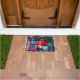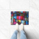 Doormat hermoso con el modelo abstracto moderno colorido con una mirada del vitral similar a una composición de Mondrian