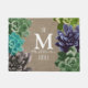 ¿Cuál es un jardín sin los succulents? Coloque esto entre sus plantas en su puerta principal para un acento precioso. ¡Este doormat ofrece las flores suculentas clasificadas en los lados izquierdos y derechos del doormat sobre un falso fondo de la impresión de la arpillera del país! ¡Personalizado con su propia letra del apellido y del monograma!